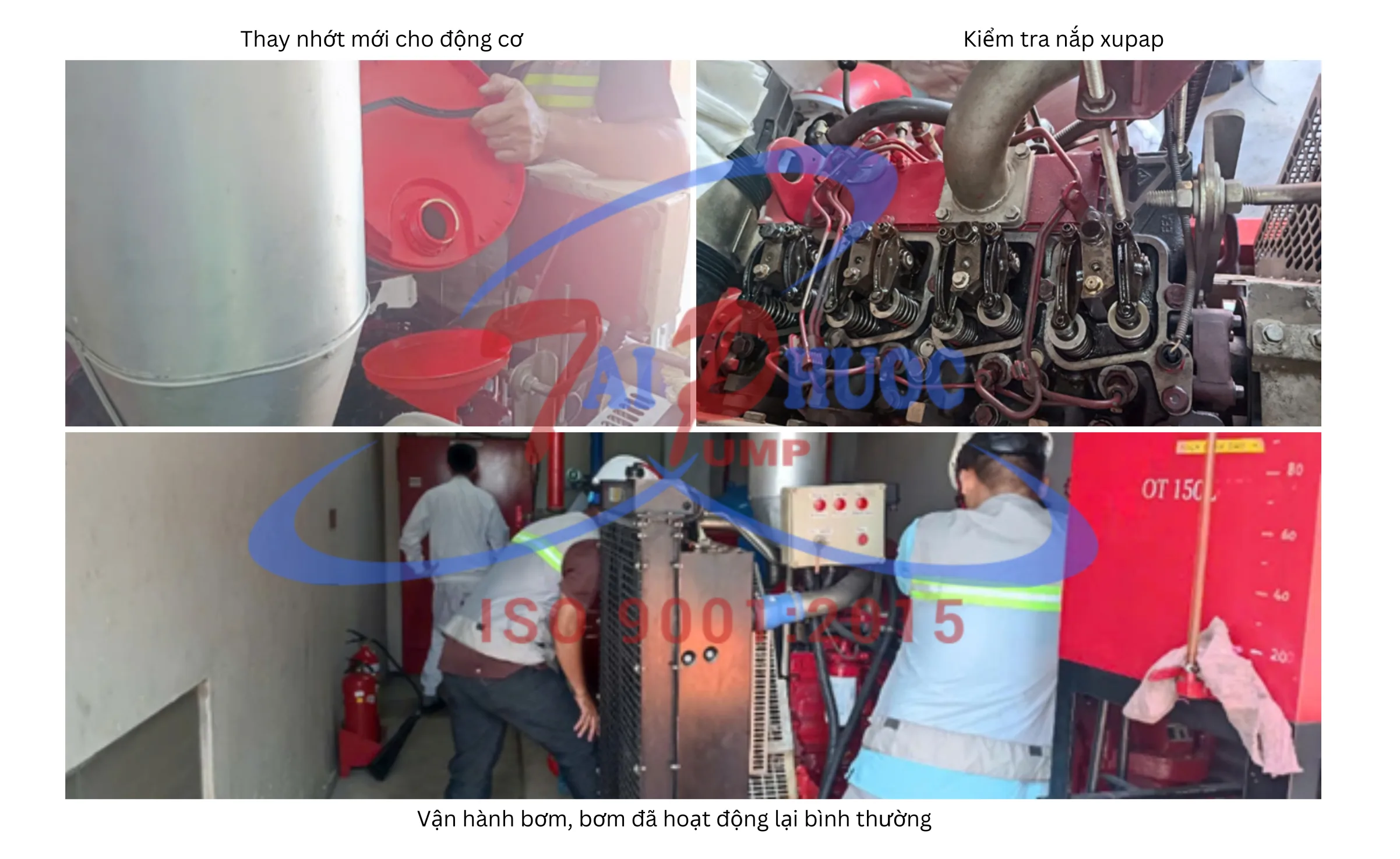 Kết quả: Động cơ khởi động tốt, bơm vận hành ổn định, không phát hiện rò rỉ dầu. Các chỉ dấu bất thường về âm thanh hay rung động đều không xuất hiện trong suốt thời gian chạy thử.
